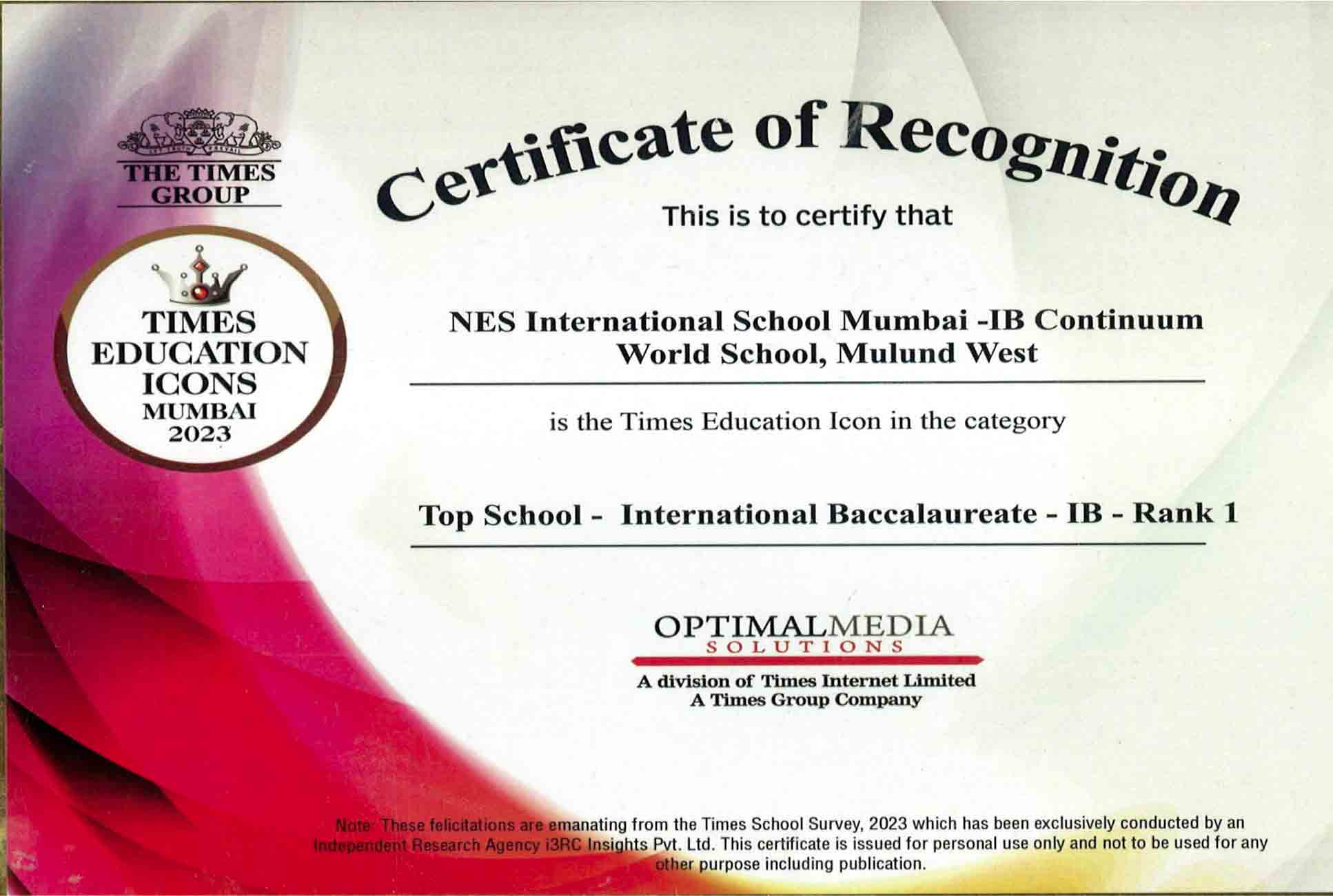 NES International School Mumbai -an IB Continuum School, ranked no.1 consistently since 2017 by Times Education Icon, Mumbai, continues to celebrate excellence in international education and holistic learning.