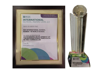 NES International School Mumbai received the British ISA Award (2019–2022) in recognition of outstanding development and innovation in curriculum design.